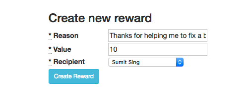 My colleague Sumit stayed late last night to help me fix a bug in my code. Without his help, I might not have solved it. I want to recognize that big contribution he just made by giving him 10 points.